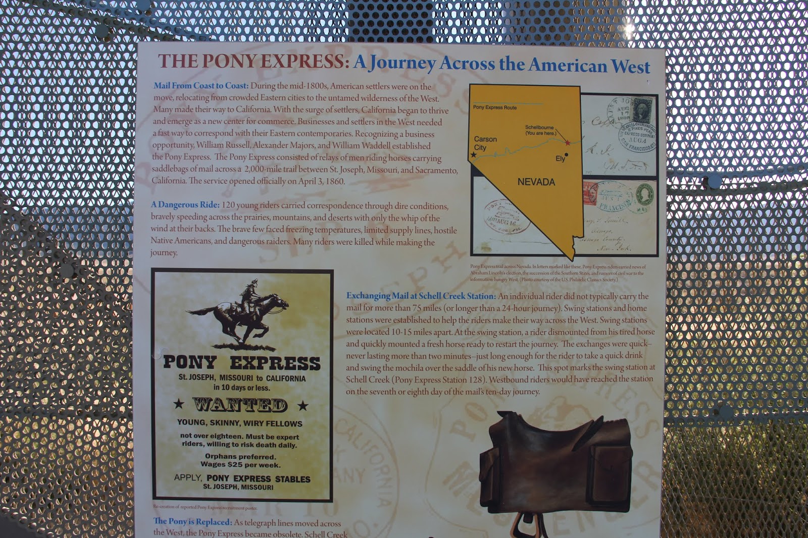 By Sunday morning I had a plan. Drive back to Springville along the Pony Express route