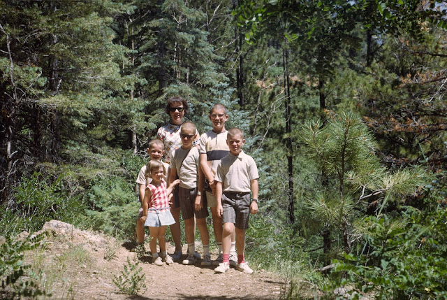 One of my most vivid memories of this family vacation was me getting lost in the trees one evening as I roamed beyond our cabin at the North Rim. I don't know who took this photo of me, all of us boys had our own little Kodak Instamatic cameras with which we took assorted odd photos.