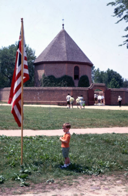 After 2 days of looking at the colonial period as seen through the re-construction at Williamsburg we headed for Washington, D. C., and found a RV park in a wooded area about 20 miles out of town. The next morning we drove into the heart of the Washington Mall and found that parking space for a 26 foot long motorhome was a t a real premium. I finally found a place near a bus area and left Norda in charge of seeing that we didn't get towed away while I took the children to see the Capitol building While we were gone a nice officer explained to Norda that we shouldn't be parked there and when she asked where we should park he said "on the outskirts of town and take a taxi from there". Before moving on we saw everything on the Mall - the Lincoln, Washington, and Jefferson monuments (I think Norda and Jake were the only ones who walked down from the top of the Washington monument) [my journal confirms Mom and Jake plus Mary walked down and Bill, Bob and me walking up all of the stairs--I have long remembered that feat and am glad we did it while the upward climb was still permitted], the Smithsonian Institution, the White House and the outside of the Blair House, the Library of congress, and the Supreme Court.