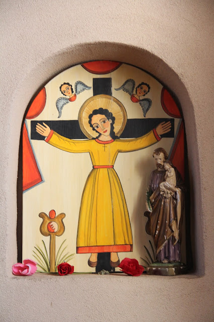 On the third day I drove south to San Luis. Years ago I had a student at BYU from the San Luis Valley. I remembered her talking about its Mormon pioneer heritage. More recently I heared about an intriguing Statoins of the Cross Shrine in the town of San Luis. A few years ago two Mormon missionaries got in trouble for taking some disrespectful photos at this shrine. San Luis, the oldest city in Colorado, was settled by migrants moving north from Spanish New Mexico. Two murals in the center of town speak to that heritage. The one above shows the blending of Spanish and indigenous culture into a new mestizo/Hispanic culture