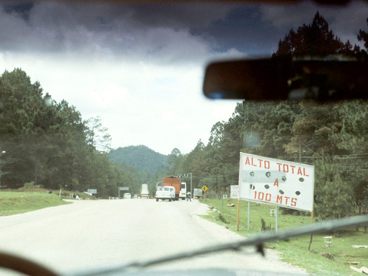 Sperry (left) took a turn at driving and I rode shot gun while Japen and Tom (who served a mission in Coast Rica) roll played (as having been taught in ROTC) in Spanish what conversation they would have if and when we reached the Zapatistas. About a hundred yards down this road, we rounded a curve and came to a halt in front of a rudimentary road block of felled tree branches and trunks.