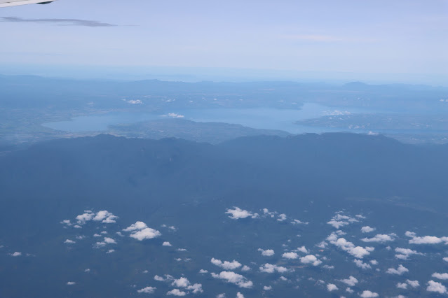 Our 8:00 am flight was from the new Medan airport about an hour outside of town. Will was in the window seat and took some photos. Mt Sinabung and the Batak highlands to the southwest.