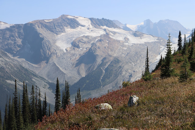 On the advice of a park ranger, I parked in the Illecillewaet Campground and then hiked the Marion Lake Trail (8) and then the Abbott Ridge Loop (18) but not all of the side spur up to the ridge top. Around 16 kilometers total. It was an excellent choice. From this trail I could look north, east and south and see glaciers.